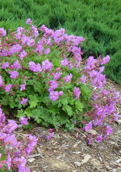 ГЕРАНЬ Кембріджська Cambridge – приваблива та невибаглива багаторічна рослина. Висота 20-30 см. Листя світло-зелене слабо опушене, розташовується на черешках. На довгих квітконосах розташовані пятипелюсткові квітки які можуть мати відтінки від бузкового до лілово-рожевого. Найкраще росте й цвіте на сонячному місці або в невеликій півтіні. Цвітіння рясне. Віддає перевагу родючим та помірно зволоженим грунтам з гарним дренажем. Морозостійка. Потребує помірного поливу. Рекомендується для одиночних і групових посадок в квітниках та ландшафтних композиціях. Цей багаторічник також процвітає в горщиках, що може прикрасити Ваш балкон або терасу.