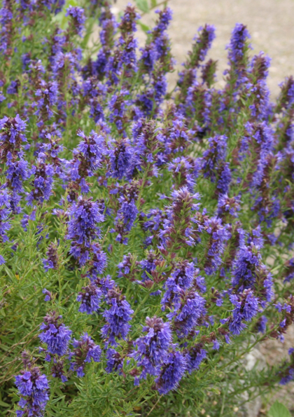 Ісоп блакитний — невеликий, сильно зростаючий кущ з миртоподібним листям і бальзамічним ароматом, синіми квітами в довгих колосах у липні-серпні. Декоративна, лікарська і пряна рослина, в біблійні часи вважалася панацеєю від усіх хвороб і нещасть. Висота: 50 см. Всі частини рослини надзвичайно ароматні, тому висаджувати її слід у доступних місцях, щоб при дотику рослина випускала свій аромат. Незамінний для живоплотів і садових бордюрів. Також підходить для віконних коробок. Листя добре переносить забруднення атмосфери в містах. Це також хороший варіант для патіо, де його аромат буде супроводжувати вас теплими вечорами.