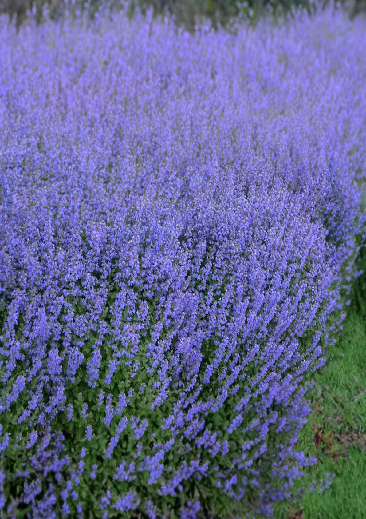 Котяча м'ята — це багаторічна рослина. Найпоширенішими видами, що культивуються, є Nepeta x faasseni (30-100 см заввишки), Nepeta nervosa (компактні кущі до 30 см заввишки), Nepeta grandiflora (темно-зелене листя, великі квіти, до 70 см заввишки) та Nepeta subsessilis (до 100 см заввишки з прямостоячими, нерозгалуженими стеблами). Рослини з сильно розгалуженими стеблами . Квіти, які з'являються з травня по вересень, фіолетові, сині, білі .Листя, якщо його потурбувати, випромінює сильний ароматний запах. Після першого періоду цвітіння рекомендується обрізати рослини приблизно на 10 см над землею, щоб вони знову зацвіли восени та зберегли гарну форму.