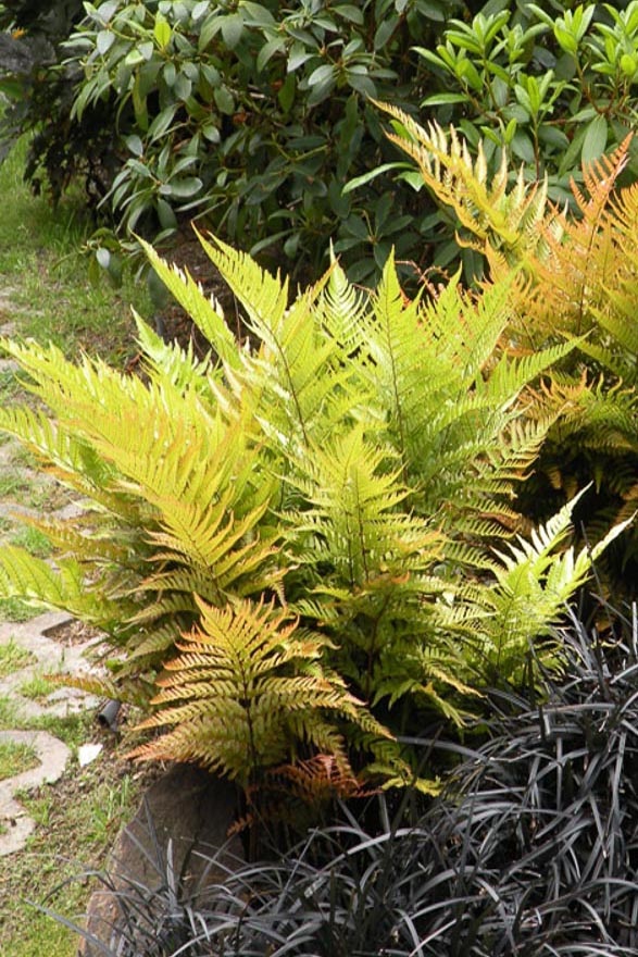 ЩИТНИК осінній, напіввічнозелена папороть висотою до 75 см, що утворює компактний пучок широкояйцевидного, двічі перистонадрізаного листя, часто мідно-рожевого кольору в молодому віці.