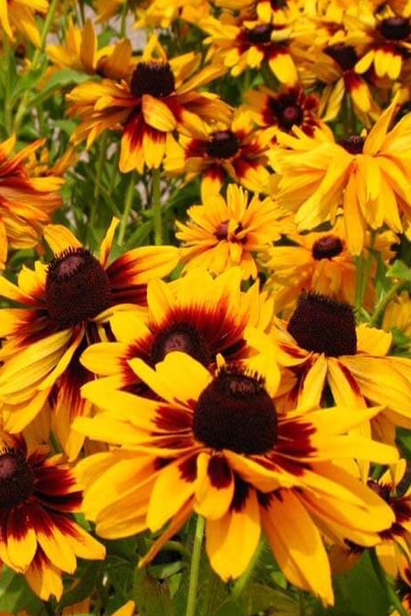 РУДБЕКІЯ західна - це багаторічник з сильно розгалуженими стеблами, блискучими, крупнозубчастими листками, що досягають у висоту 90-100 см. Квіткові кошики діаметром 12 см складаються з жовтих язичкових квіток і коричнево-чорних трубчастих квіток. Рудбекія - один з основних багаторічних рослин для великих клумб. Він невибагливий, характеризується тривалим цвітінням, з липня по жовтень. Це медоносна рослина, а також приваблива для метеликів. Рекомендується для будь-якої багаторічної клумби, де достатньо сонця і середня за вологістю грунт. Він також добре почувається в сухих місцях. Найкраще виглядає при посадці групами (по 10-20 штук разом). Його можна використовувати для натуралістичних посадок, на квіткових галявинах або в контейнерах. Квіти придатні для зрізання і довго залишаються свіжими у вазі.