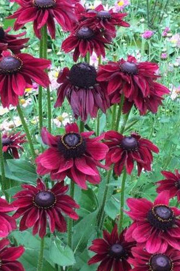 РУДБЕКІЯ західна Cherry Brandy - це багаторічник з сильно розгалуженими стеблами, блискучими, крупнозубчастими листками, що досягають у висоту 80-90 см. Квіткові кошики діаметром 12 см складаються з вишневих квіток. Рудбекія - один з основних багаторічних рослин для великих клумб. Він невибагливий, характеризується тривалим цвітінням, з липня по жовтень. Це медоносна рослина, а також приваблива для метеликів. Рекомендується для будь-якої багаторічної клумби, де достатньо сонця і середня за вологістю грунт. Він також добре почувається в сухих місцях. Найкраще виглядає при посадці групами (по 10-20 штук разом). Його можна використовувати для натуралістичних посадок, на квіткових галявинах або в контейнерах. Квіти придатні для зрізання і довго залишаються свіжими у вазі.