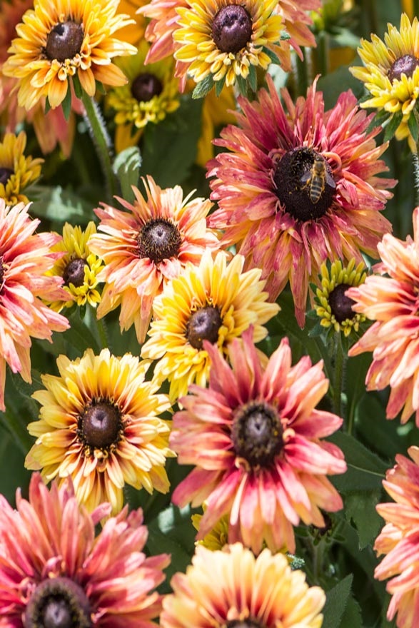 РУДБЕКІЯ західна Flamenco Apricot - це багаторічник з сильно розгалуженими стеблами, блискучими, крупнозубчастими листками, що досягають у висоту 80-90 см. Квіткові кошики діаметром 12 см складаються з блідожовтих , блідорожевих,та червоних махрових квіток. Рудбекія - один з основних багаторічних рослин для великих клумб. Він невибагливий, характеризується тривалим цвітінням, з липня по жовтень. Це медоносна рослина, а також приваблива для метеликів. Рекомендується для будь-якої багаторічної клумби, де достатньо сонця і середня за вологістю грунт. Він також добре почувається в сухих місцях. Найкраще виглядає при посадці групами (по 10-20 штук разом). Його можна використовувати для натуралістичних посадок, на квіткових галявинах або в контейнерах. Квіти придатні для зрізання і довго залишаються свіжими у вазі.