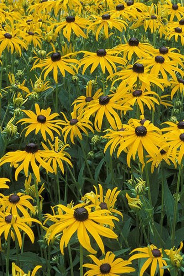 РУДБЕКІЯ західна Goldsturm - це багаторічник з сильно розгалуженими стеблами, блискучими, крупнозубчастими листками, що досягають у висоту 90-100 см. Квіткові кошики діаметром 12 см складаються з жовтих язичкових квіток і коричнево-чорних трубчастих квіток. Рудбекія - один з основних багаторічних рослин для великих клумб. Він невибагливий, характеризується тривалим цвітінням, з липня по жовтень. Це медоносна рослина, а також приваблива для метеликів. Рекомендується для будь-якої багаторічної клумби, де достатньо сонця і середня за вологістю грунт. Він також добре почувається в сухих місцях. Найкраще виглядає при посадці групами (по 10-20 штук разом). Його можна використовувати для натуралістичних посадок, на квіткових галявинах або в контейнерах. Квіти придатні для зрізання і довго залишаються свіжими у вазі.