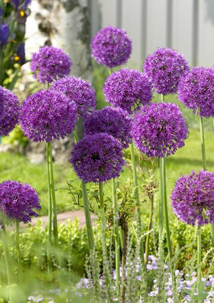 Аліум Purple Sensation - багаторічна травяниста рослина . На міцному довгому прямостоячому стеблі зявляється дивовижне суцвіття округлої форми із квіток фіолетового кольору, яке цвіте на початку літа. Листя щільне , зеленого кольору. Висота рослини до 90 см . Діаметр суцвіття 5 см Легко вирощується та не вибаглива у догляді. Росте на повному сонці , родючому, добре дренованому грунті із помірною вологістю. Стійка до морозів . Розмножується цибулинами. Аліум вирощуйте купками щоб надати структуру Вашому саду , чудово виглядає у масовій посадці, з іншими багаторічниками , як бордюрна рослина, у горщиках та у різних ландшафтних композиціях. Приваблює бджіл та метеликів. Використовується на зрізання.