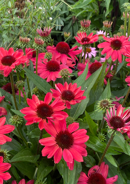 Ехінацея пурпурна – багаторічна травяниста рослина. На тонких прямостоячих , стеблах із широким ,загостреним на кінчику темно – зеленим листям , розташовуються чудові квіти червоного кольору. . Квіти схожі на ромашку. Рясно цвіте в кінці червня і продовжує з’являтися у вересні. Росте купками до 60 см у висоту. Не вибаглива та легка у догляді. Віддає перевагу сухим середнім та добре дренованим грунтам та повному сонцю. Вологість помірна. Зимостійка та посухостійка. Розмножується насінням. Ехінацея пурпурна чудово виглядає у натуралізованих садах , бордюрах, луках, у масовій посадці та відмінно поєднюється з іншими багаторічниками. Також це дивовижні зрізані квіти для композицій свіжих і засушених квітів. Приваблює бджіл та метеликів.