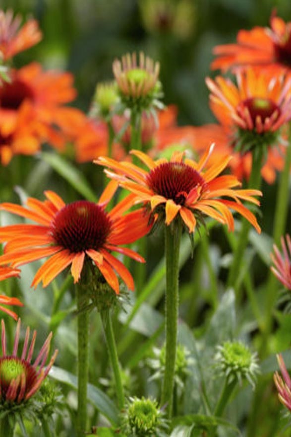 ЕХІНАЦЕЯ пурпурова Orange Pearl – багаторічна травяниста рослина. На тонких прямостоячих , стеблах із широким ,загостреним на кінчику темно – зеленим листям , розташовуються чудові квіти помаранчевого кольору. . Квіти схожі на ромашку. Рясно цвіте в кінці червня і продовжує з’являтися у вересні. Росте купками до 60 см у висоту. Не вибаглива та легка у догляді. Віддає перевагу сухим середнім та добре дренованим грунтам та повному сонцю. Вологість помірна. Зимостійка та посухостійка. Розмножується насінням. Ехінацея пурпурна чудово виглядає у натуралізованих садах , бордюрах, луках, у масовій посадці та відмінно поєднюється з іншими багаторічниками. Також це дивовижні зрізані квіти для композицій свіжих і засушених квітів. Приваблює бджіл та метеликів.