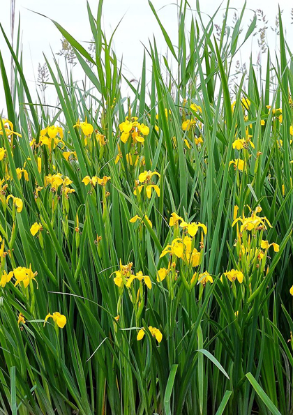 Ірис досягає 70-120 см у висоту. Листя матово-зелені, мечоподібні, до 3 см завширшки. Розгалужені пагони. Квітки жовті з коричневими візерунками на нижніх листочках оцвітини. Цвітіння відбувається з травня по липень. Відомий як болотна рослина, йому потрібні вологі місця, але він добре переносить посуху і рясно цвіте. Кислий субстрат. Добре росте на сонячних місцях. Багаторічна рослина, рекомендована для посадки у водоймах (допускає занурення до 15 см), часто використовується для очищення води (вбирає корінням важкі метали).