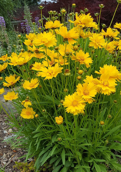 КОРЕОПСІС Grandiflora - невисока декоративна багаторічна трав'яниста рослина. Стебла прямостоячі, гіллясті. Листя, світло-зелені. Квітки численні, діаметром 5 см., жовтого кольору. Висота до 40 см. Ширина 40см. Надає перевагу сонячним ділянкам але може перенести легку півтінь . Краще буде рости на родючому, добре дренованому, слабокислому або нейтральному грунті. Потребує помірного поливу. Стійка до вологи та посухостійка. Чудово використовується для одиночних і групових посадок, на бордюрах та квітниках, в ландшафтних композиціях, альпінаріях. Можливе також вирощування в декоративних контейнерах . Також використовується на зрізання.