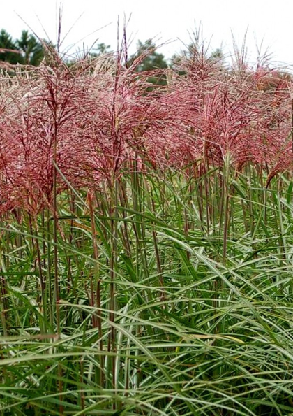 Міскантус китайський дуже ефектна, сильно зростаюча трава, що утворює велику купину . Декоративний злаковий багаторічник, що утворює густий, компактний кущ. Досягає висоти у цвітінні до 220 см. Довге, широке, зелене листя з білою прожилкою посередині граціозно згинається вниз. Цвіте красивими рожево-коричневими мітелками, які до зими набувають сріблястого відтінку. Найкраще розвивається на сонці, на помірно вологих, добре дренованих грунтах. Старі стебла зрізаються ранньою весною для відновлення росту. Ця рослина стане справжньою окрасою у Вашій домашній колекції декоративних рослин.